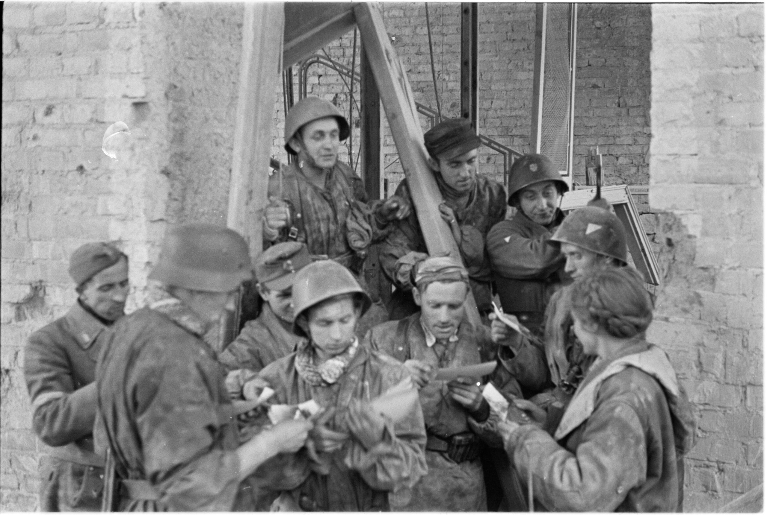 - Sylwester „Kris” Braun, Grupa powstańców z batalionu „Bończa” Zgrupowania AK „Róg” podczas oglądania fotografii wykonanych przez Sylwestra Brauna, wrzesień 1944, Muzeum Warszawy