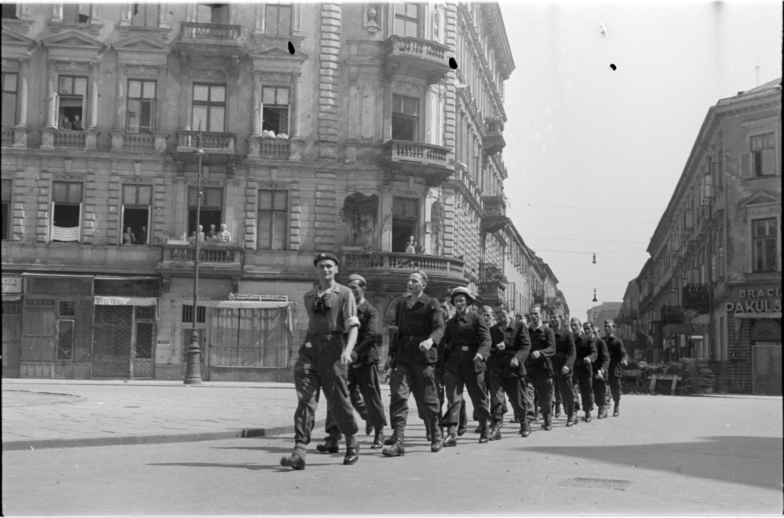 - Sylwester „Kris” Braun, Kolumna powstańców z pierwszego plutonu Oddziału Osłonowego Wojskowych Zakładów Wydawniczych maszerująca ulicą Chmielną, połowa sierpnia 1944, Muzeum Warszawy