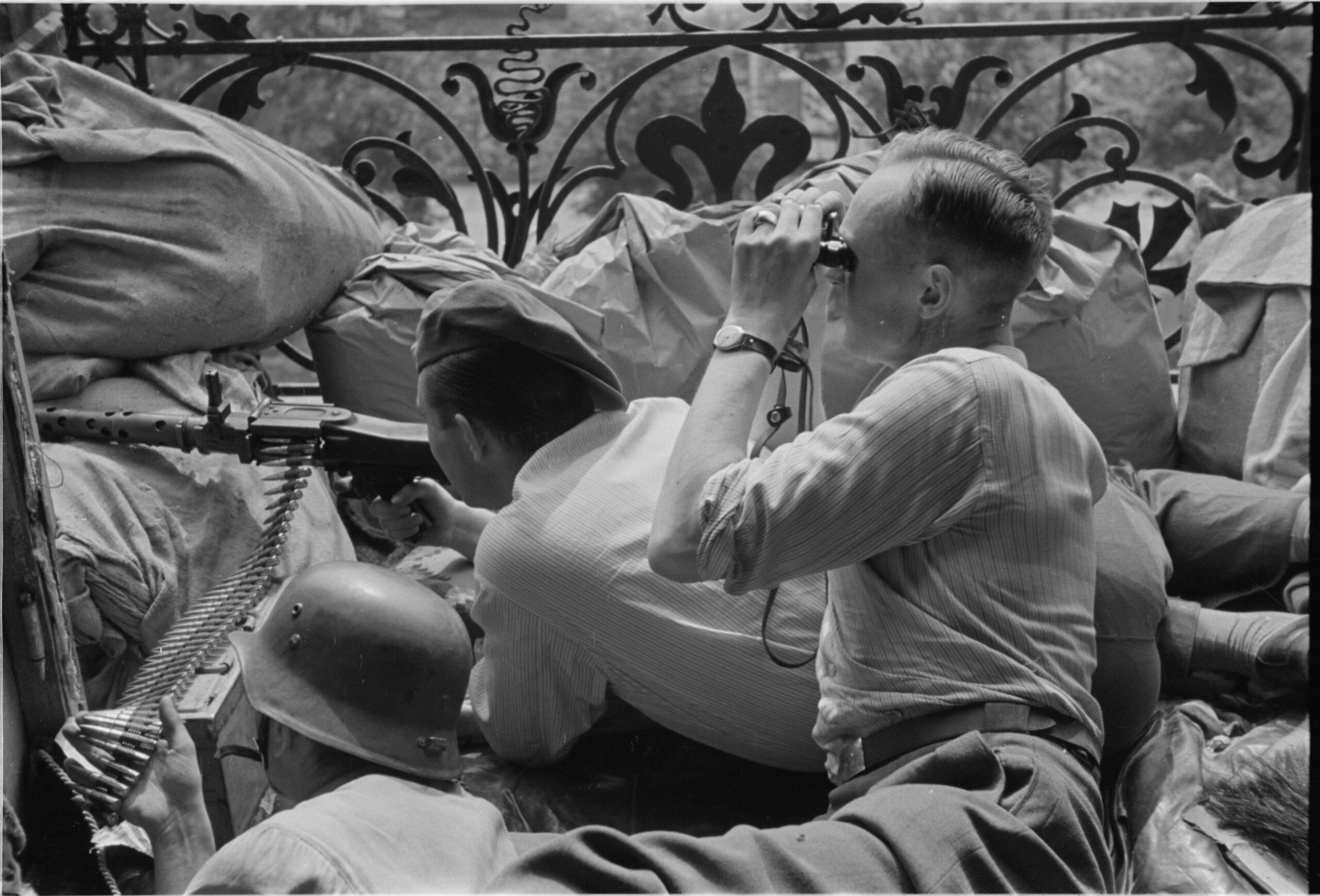 - Sylwester „Kris” Braun, Stanowisko strzeleckie na balkonie na trzecim piętrze kamienicy w Alejach Jerozolimskich 22, sierpień 1944, Muzeum Warszawy
