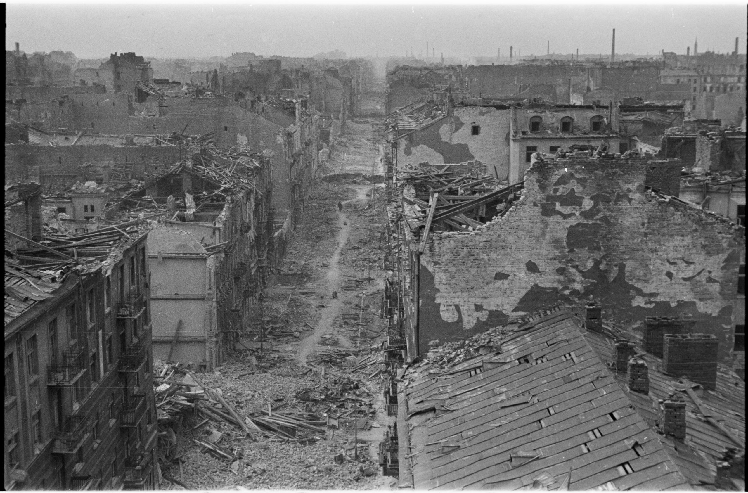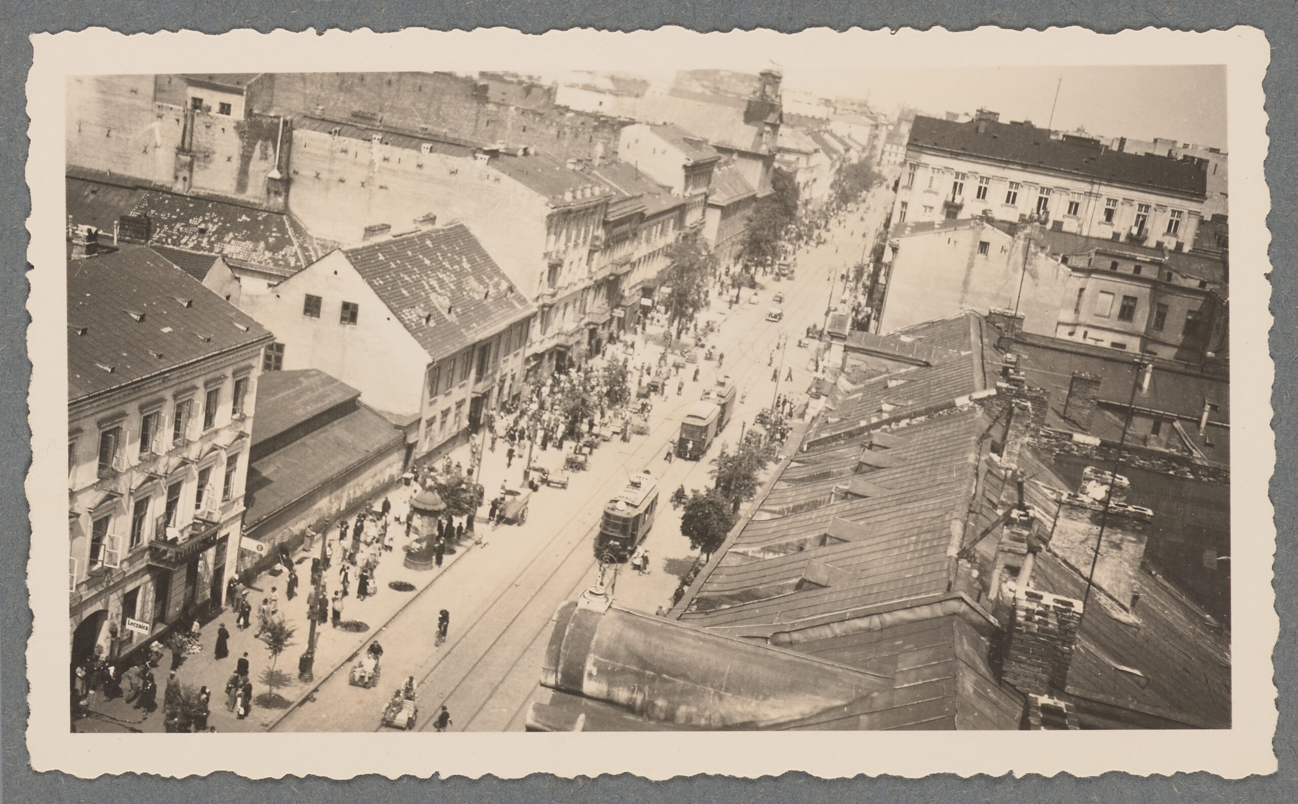 - Ulica Leszno (obecnie Al. „Solidarności”). Widok z dachu Sądów Grodzkich w kierunku północno-wschodnim, 1941, autor nieznany, fotografia w zbiorach Muzeum Warszawy (sygn. AF 3883160).
