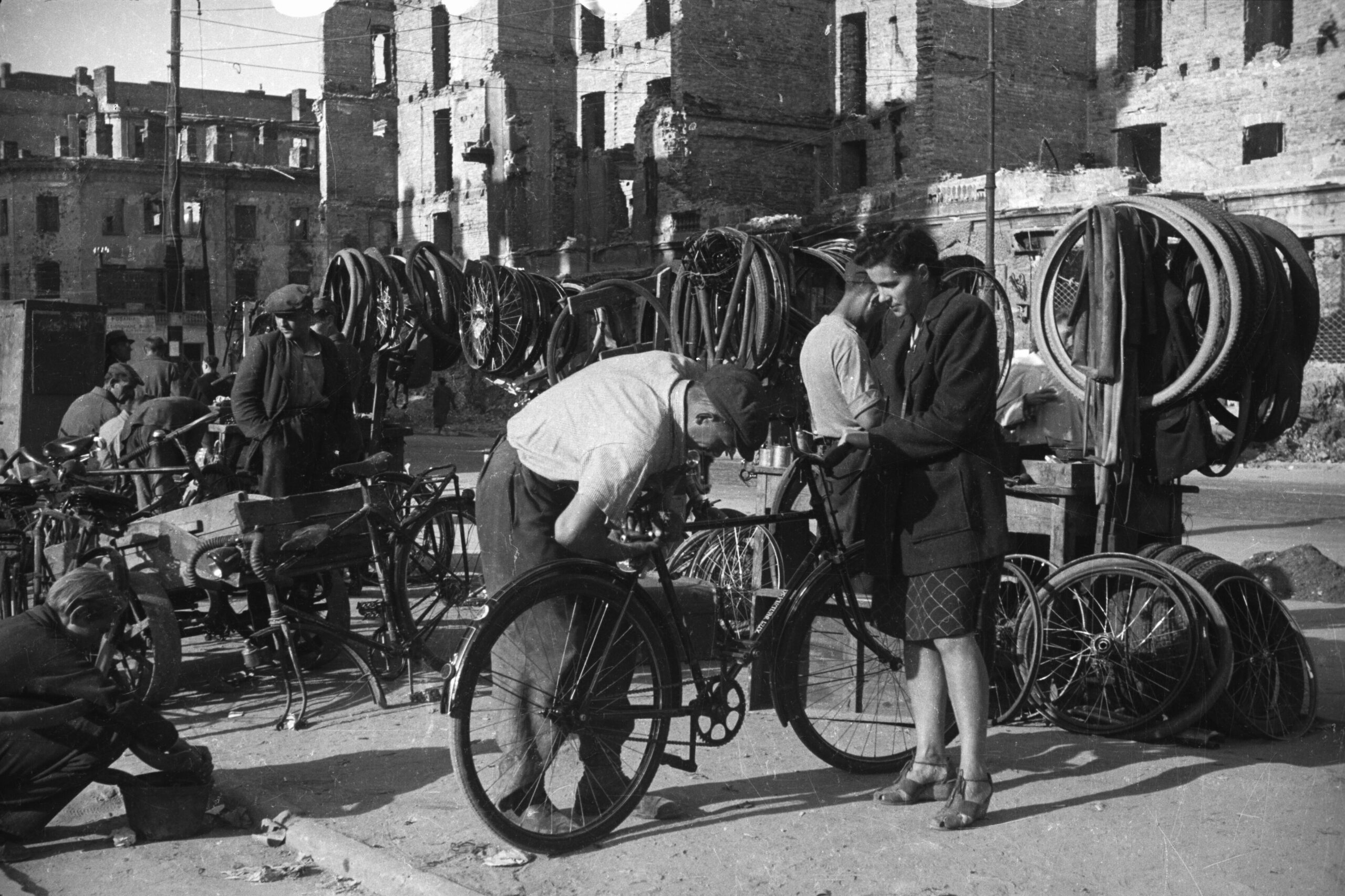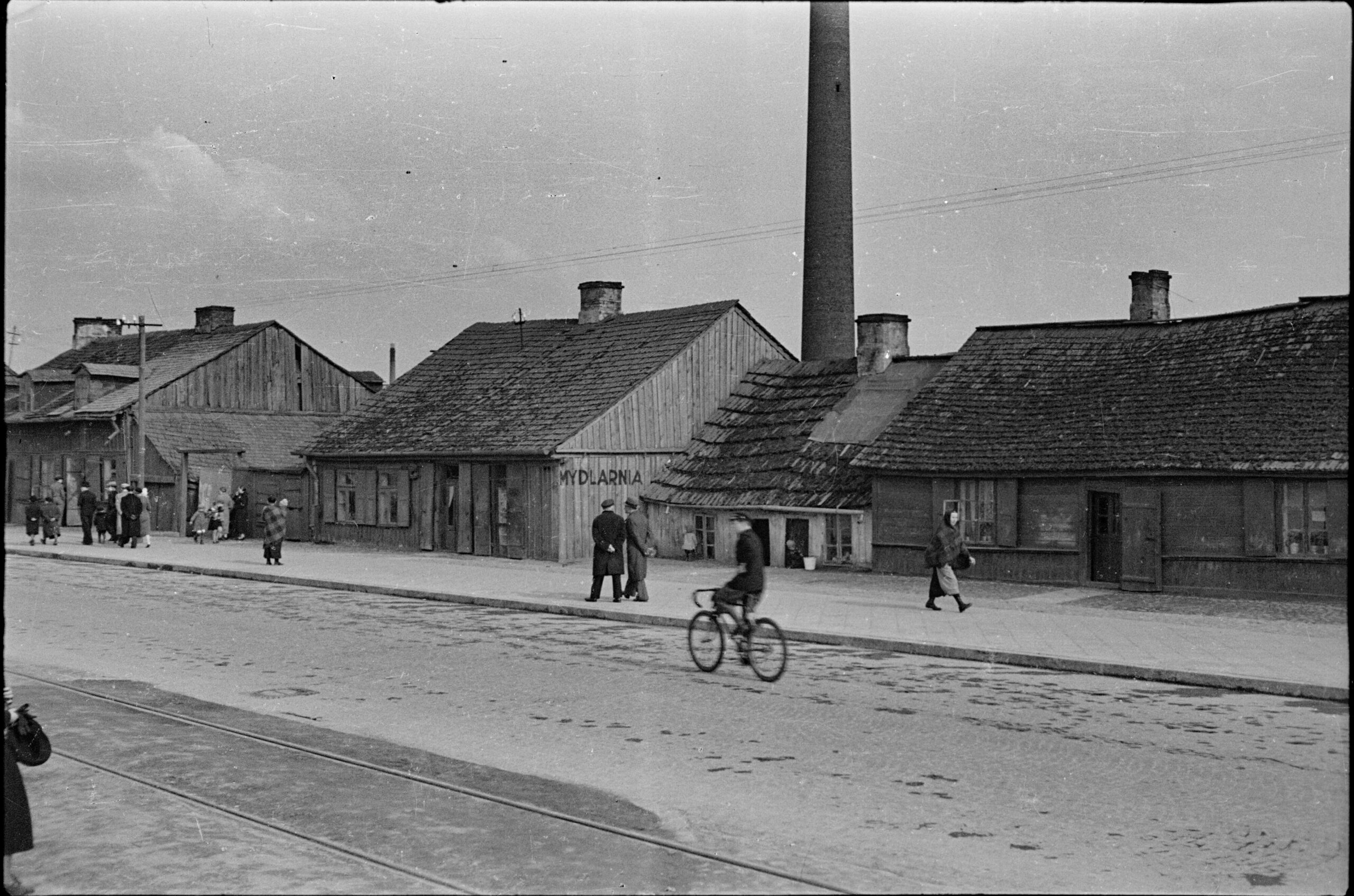 - Aleksander Minorski, Rowerzysta i przechodnie na ulicy Wolskiej. W tle drewniana zabudowa mieszcząca mydlarnię i dom poniżej progu ulicy. Zabudowa pod numerami Wolska 185, 187 i 189, ok. 1936. Zbiory Muzeum Warszawy, AN 65885/1