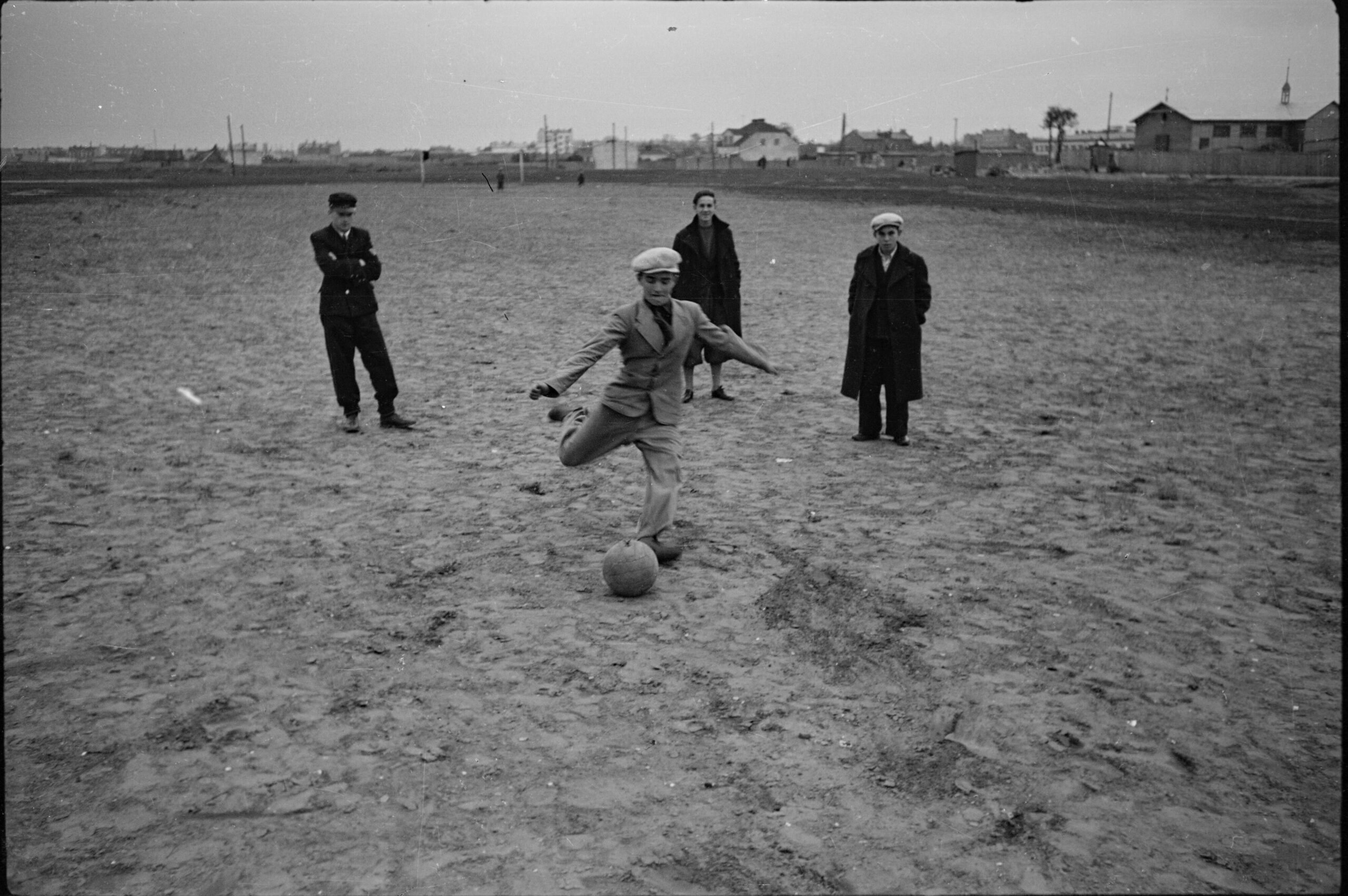 - Aleksander Minorski, Chłopcy grający w piłkę na Kole. W tle budynki przy ulicy Deotymy, ok. 1937. Zbiory Muzeum Warszawy, AN 65932