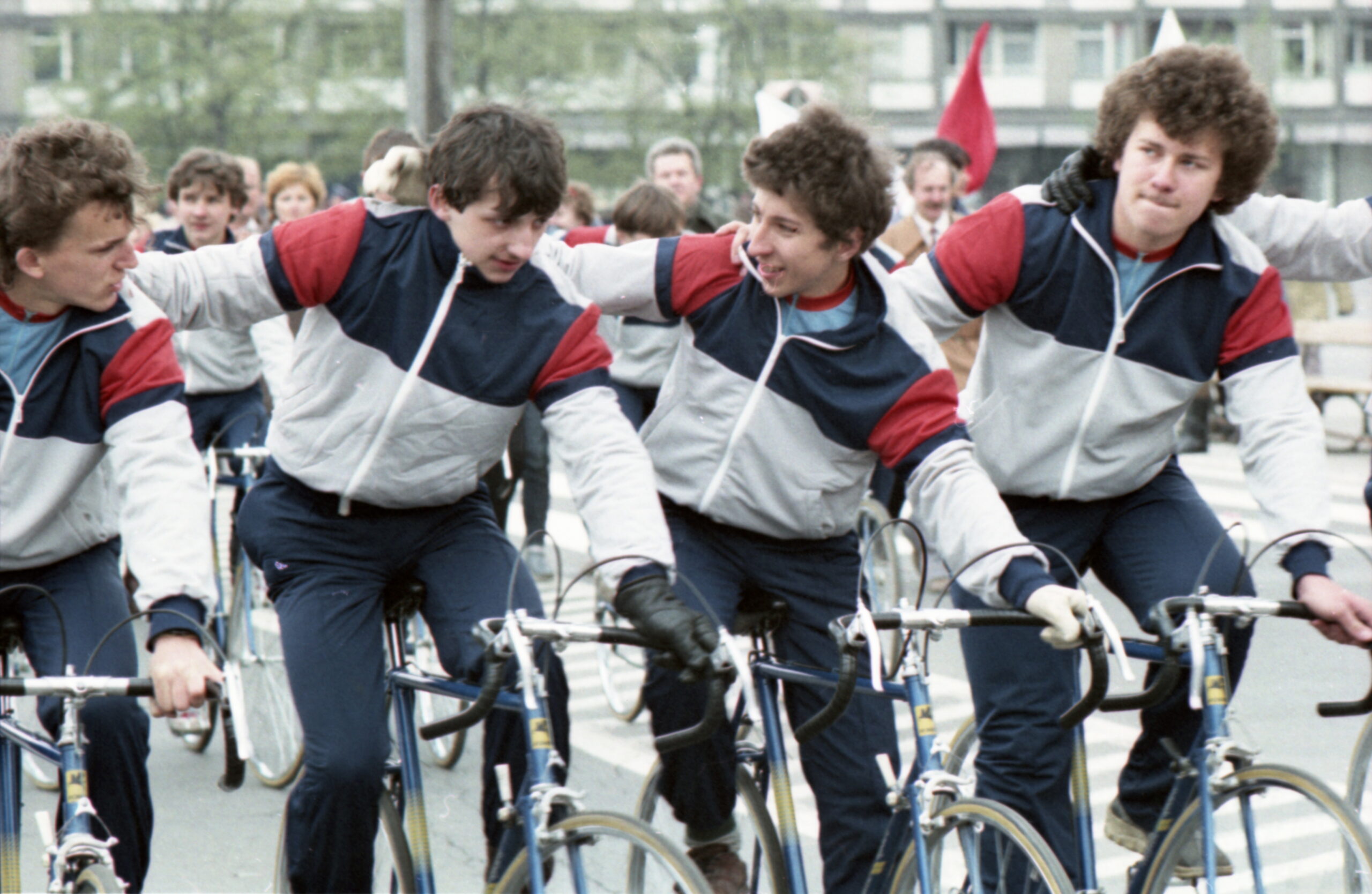 - Edward Grochowicz, Obchody Święta Pracy. Grupa rowerzystów biorących udział pochodzie na ulicach Warszawy. Ośrodek KARTA