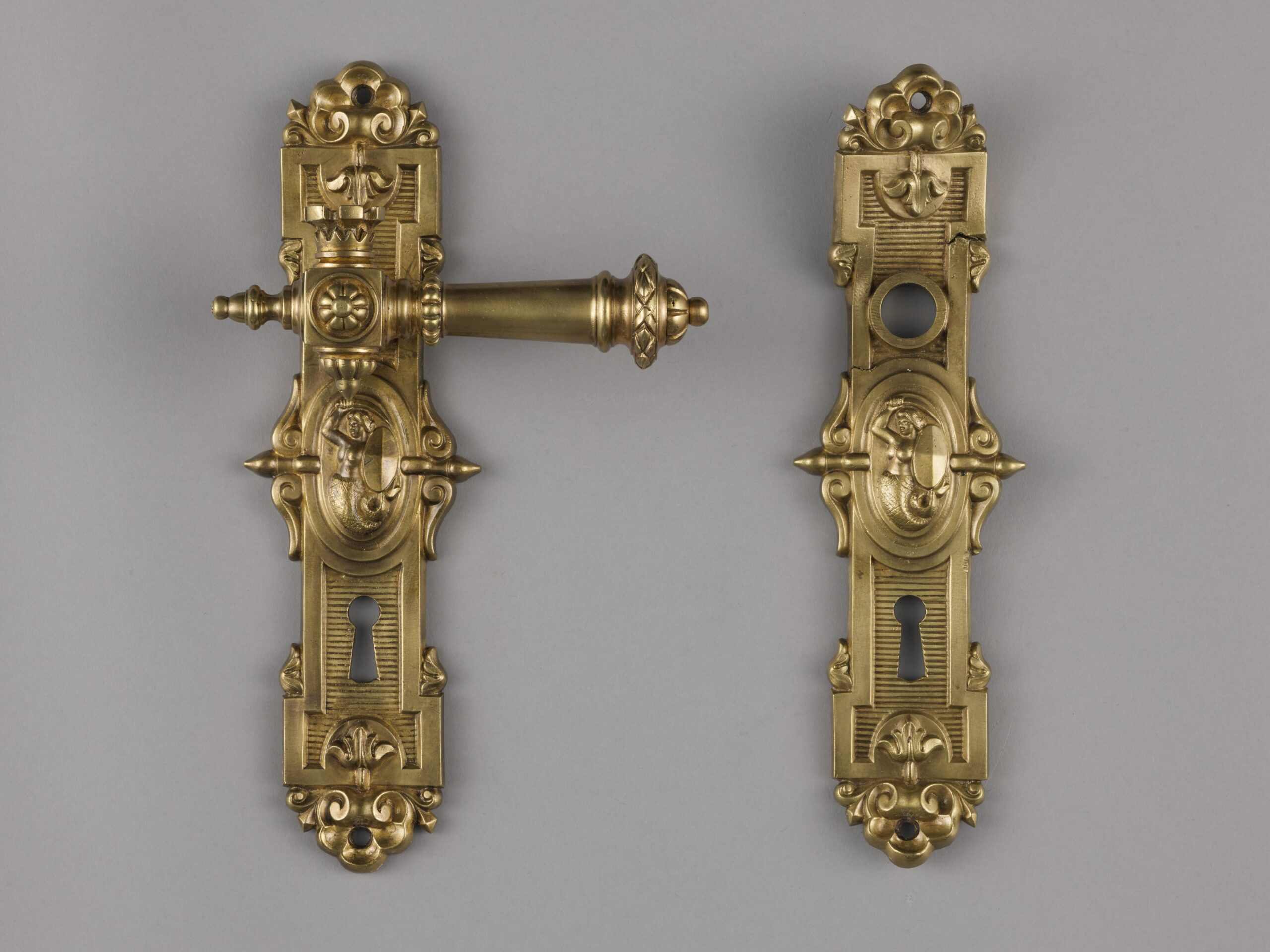 - Klamka i szyld z wyobrażeniem Syreny z ratusza miejskiego, po 1866, Muzeum Warszawy, fot. I. Oleś