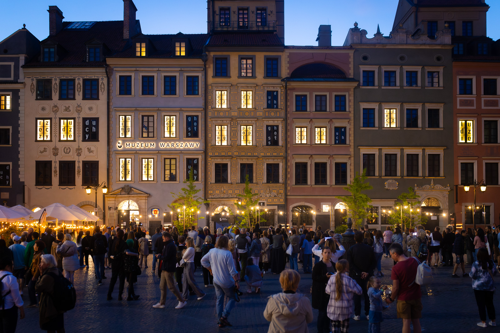 Muzeum Warszawy zajmuje 11 kamienic – całą północną stronę Rynku Starego Miasta zwaną stroną Dekerta. Interwencja Jadwigi Sawickiej nada na okres kilku miesięcy nowe życie i nowy wyraz fasadom muzealnych kamienic.